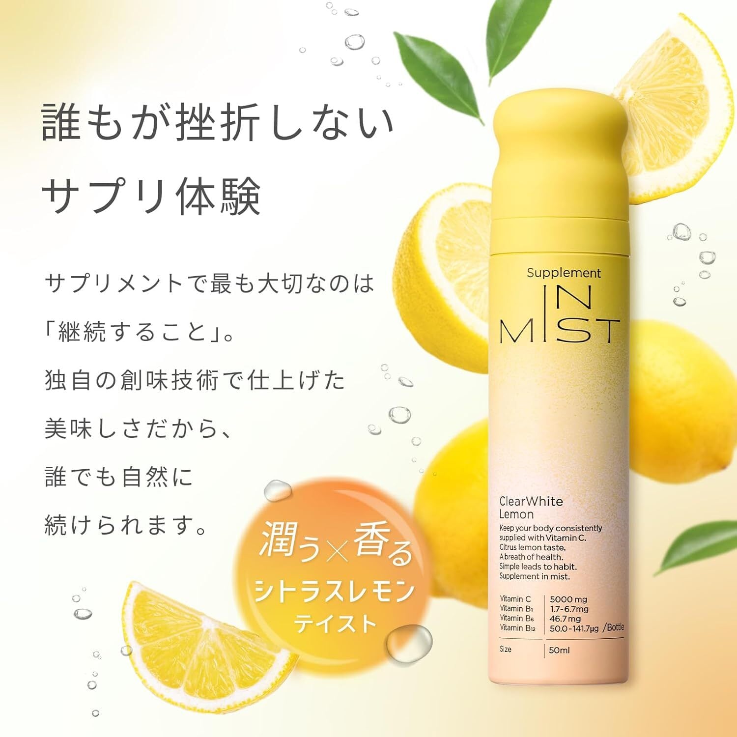 ClearWhite Lemonは、そのメカニズムに着目し、いつでもどこでもビタミンCをチャージできるよう開発されたミスト型サプリメント。手軽でおいしい美容ルーティーンを体感ください。